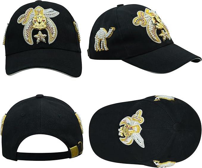 Casquette noire Shriner, casquette ajustable artisanale avec emblème de chameau, strass brodés et détails en fil de coton