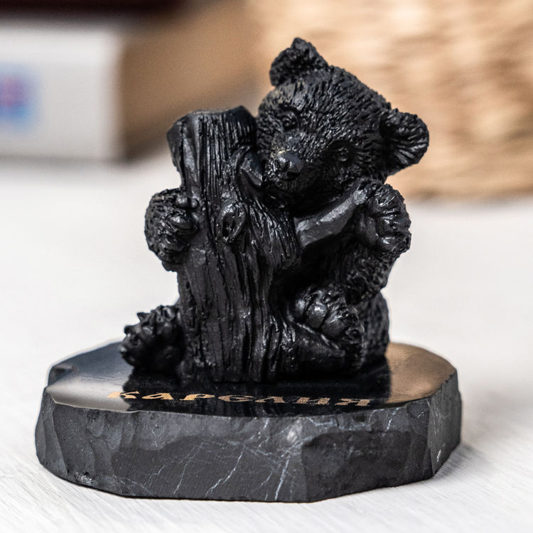 Figurine Shungite Petit ours avec une souche d'arbre