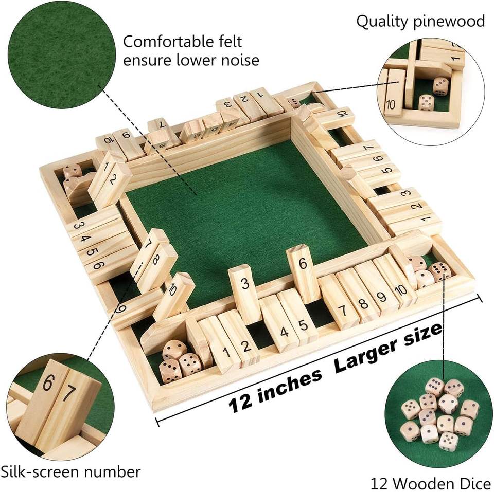 Shut the Box Dice Game 5 to 7 Years Unisex Outdoor & Indoor Wooden Hook and Ring Game for Bars and Home Parties
