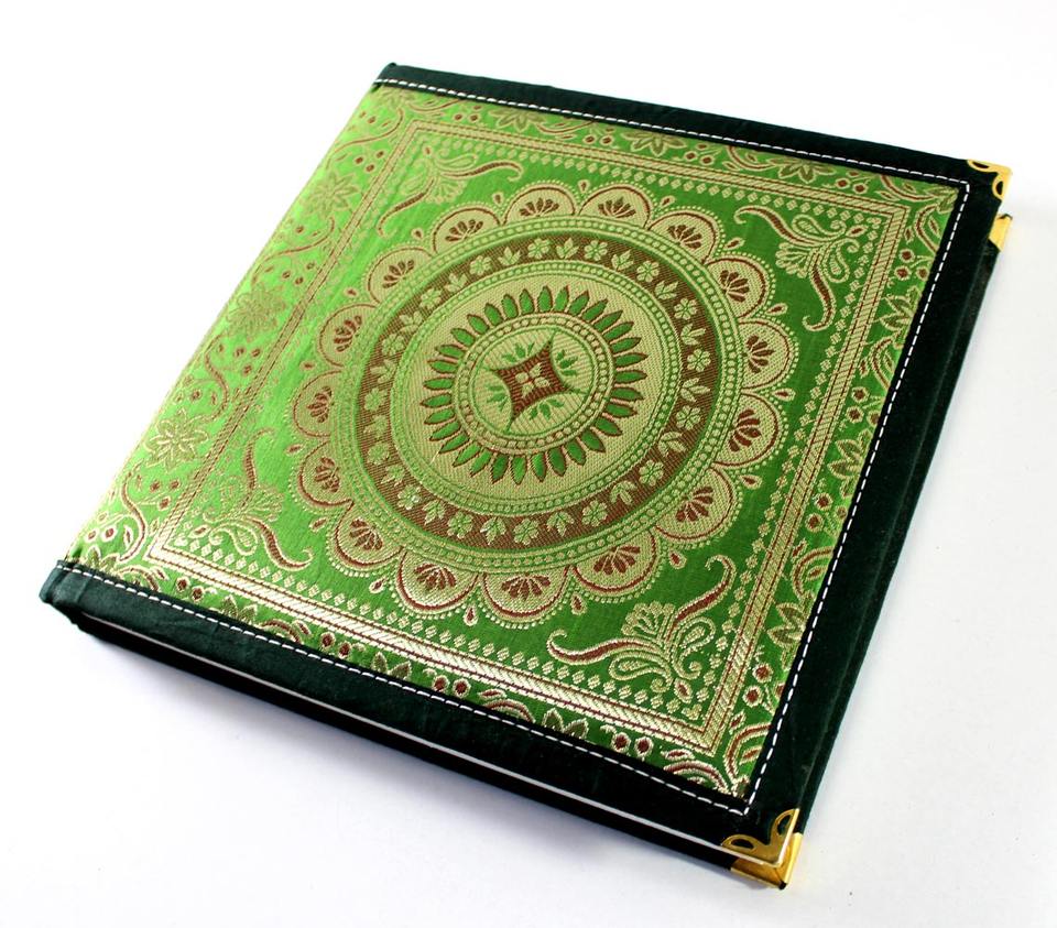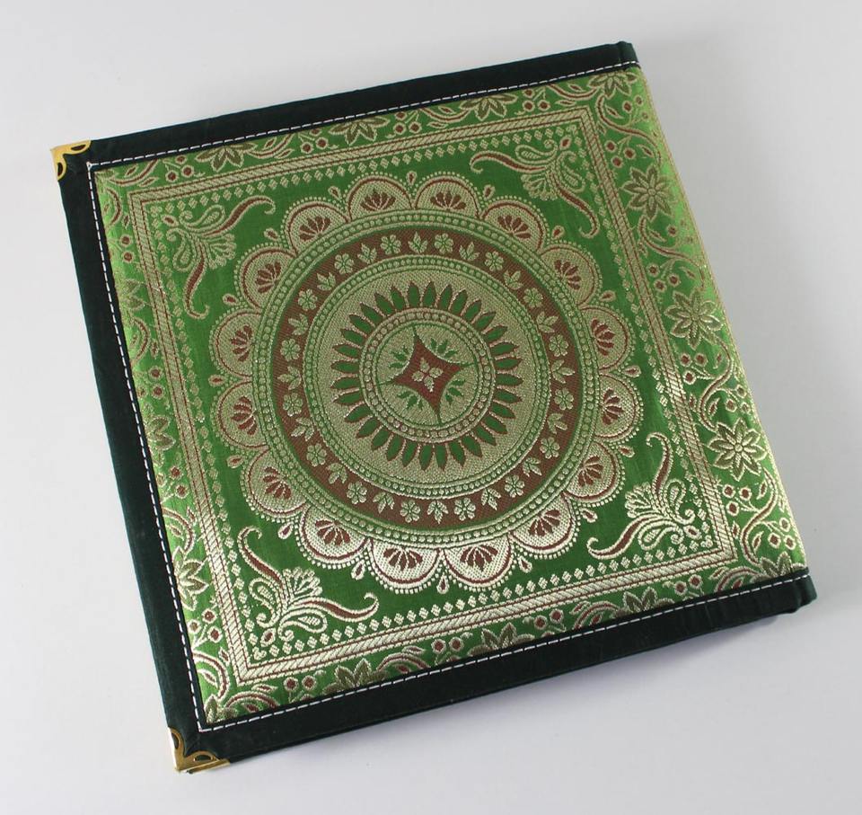 Tissu tissé Shuttle en soies colorées avec fils d'or et d'argent, coins de journaux renforcés avec des coins en laiton riche
