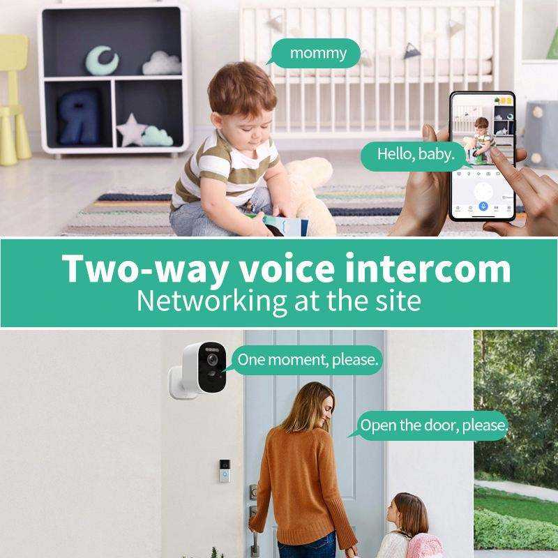 Caméra sans fil WiFi Shuzhi 4MP - Audio bidirectionnel et vision nocturne, caméra de sécurité domestique rechargeable pour intérieur/extérieur