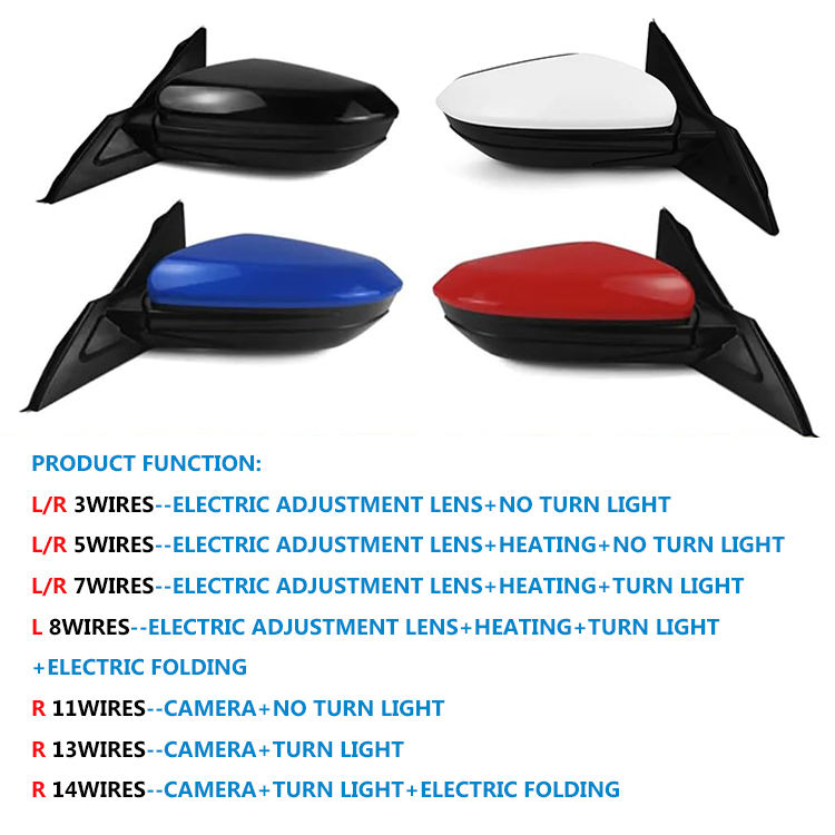 Rétroviseur latéral compatible avec HONDA CIVIC 10ème génération 2016 2017 2018 2019 2020, rétroviseurs de voiture, rétroviseur, clignotant, caméra, 3/5/7/8/11/13/14 fils