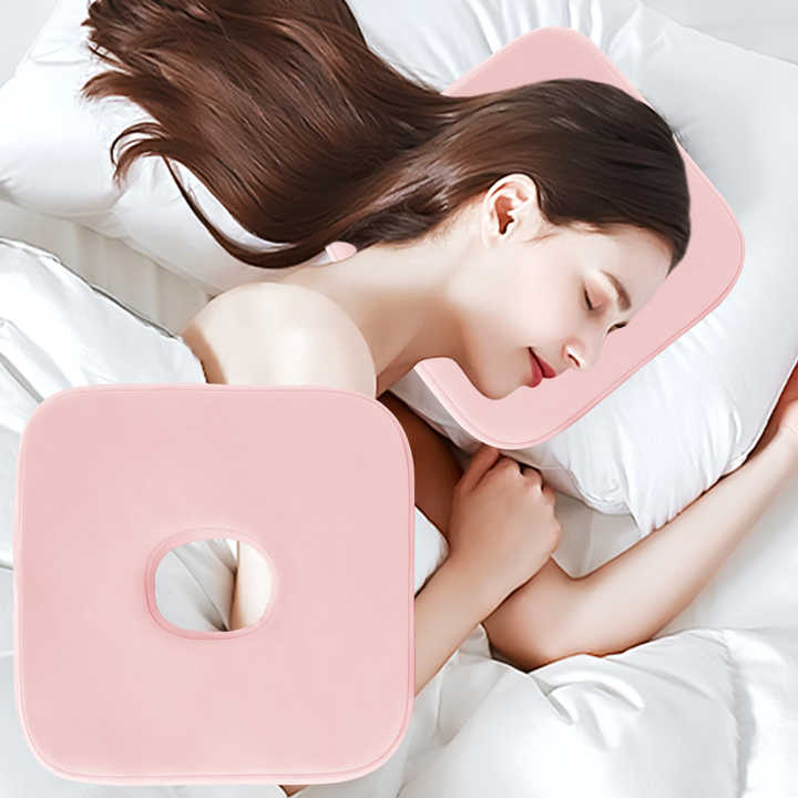 Oreiller ergonomique en forme de O pour dormeurs latéraux avec mousse à mémoire de forme tricotée, soulage les douleurs aux oreilles et les plaies de pression, portable pour lit, voiture, bureau