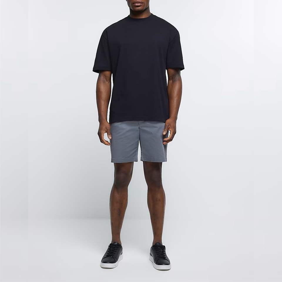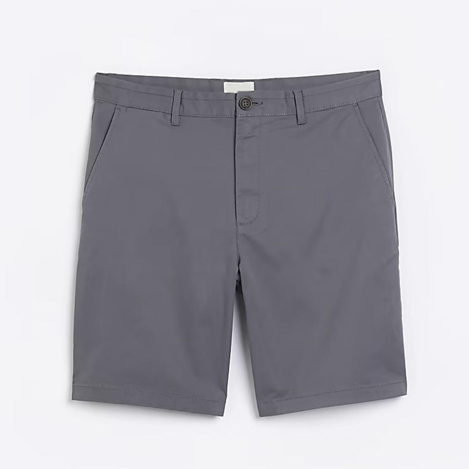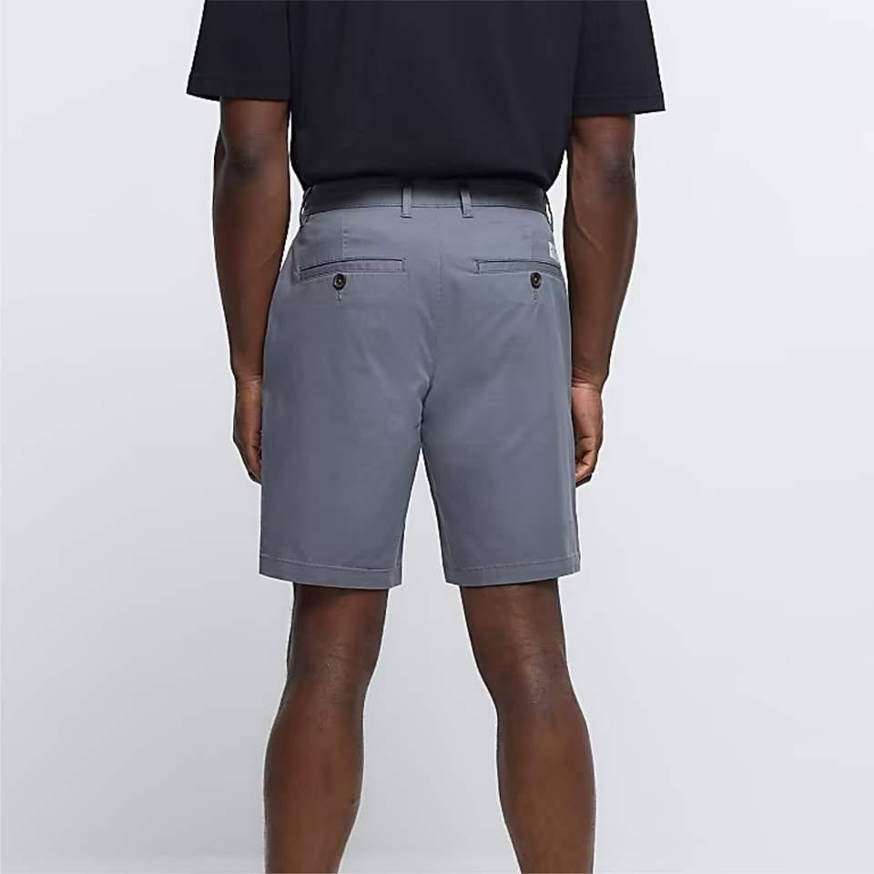 Side Slip Pockets Belt Loops Button and Zip Fastening 98% Cotton 2% Elastane Grey Slim Fit Chino Shorts
