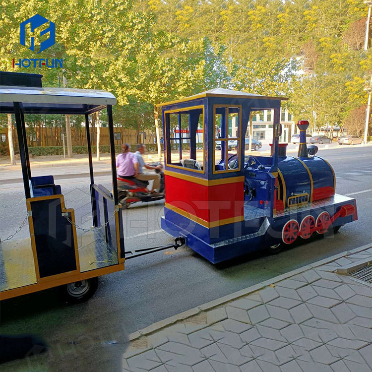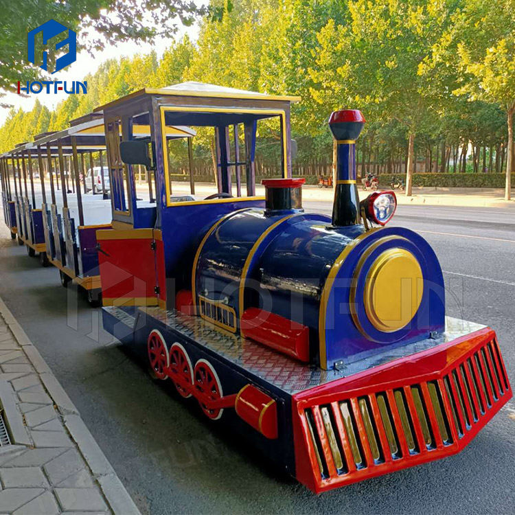 Train touristique sans rail 27 places Train touristique attrayant en acier centre commercial extérieur manèges de parc d'attractions à vendre