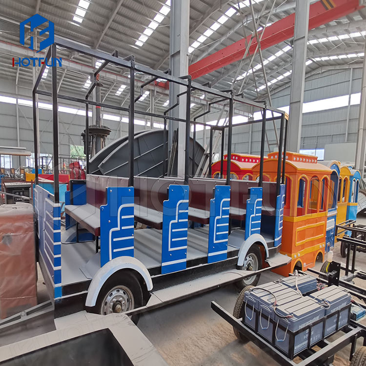 Train touristique sans rails à batterie, train touristique attrayant, manèges de parc d'attractions en plein air à vendre, centre commercial en acier
