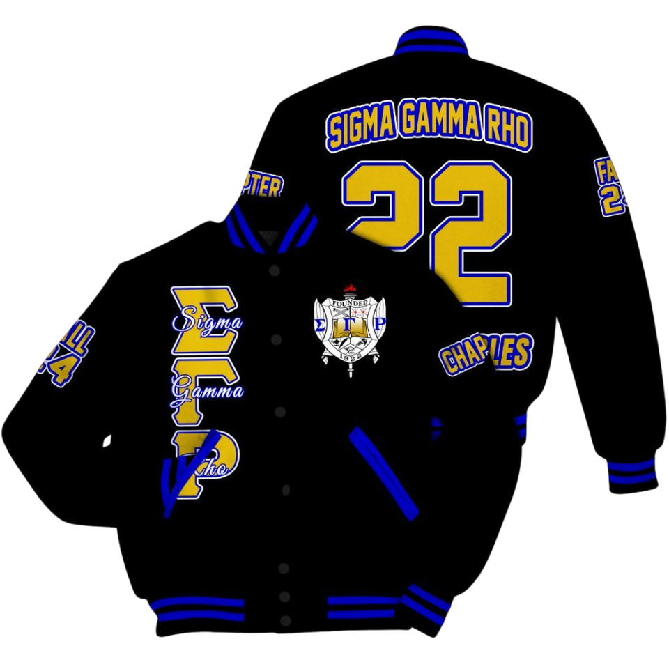 Sigma Gamma Rho 1922 Greek Varsity Letterman Jacket Royal Caniche Inspiré Premium SGRho Pride Apparel