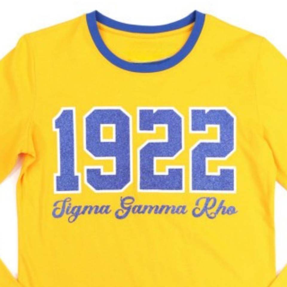 Sigma Gamma Rho or t-shirt à manches longues pour femmes paillettes lettres grecques bouclier imprimer 100% coton doux sororité chemise coupe décontractée