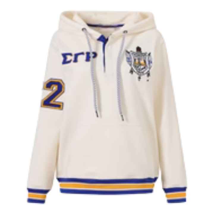 Sweat-shirt à capuche unisexe premium Sigma Gamma Rho SGRho, bleu et or, avec boutons sur le devant, vêtement grec de sororité