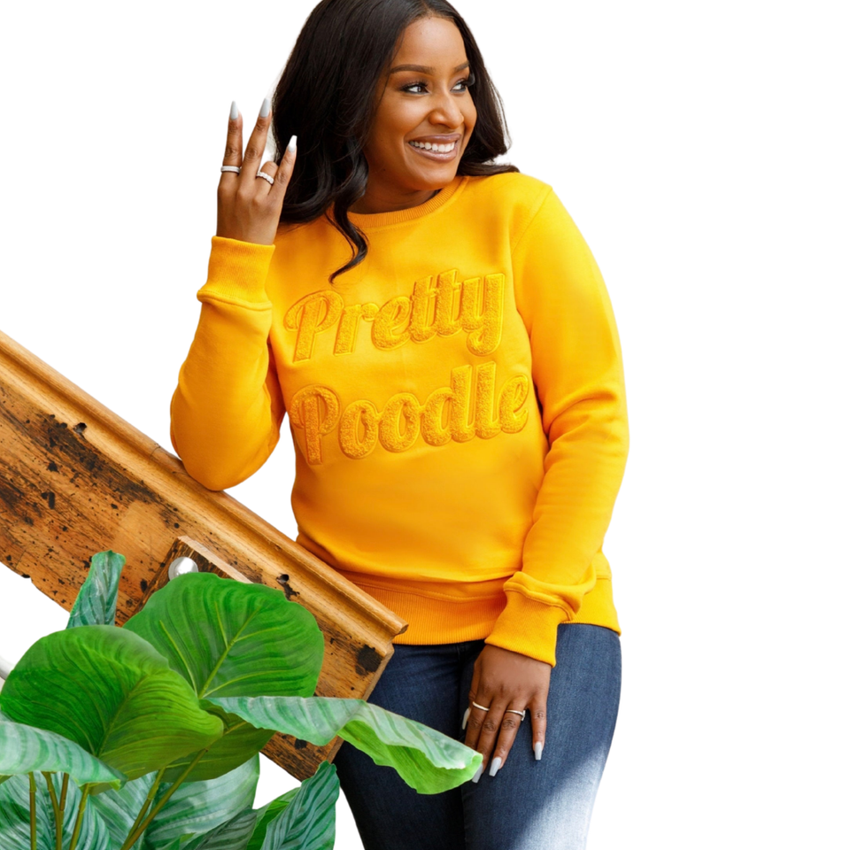 Sweat-shirt en chenille doré Sigma Gamma Rho Pretty Poodle pour femme, mélange de coton, manches longues, coupe décontractée et élégante
