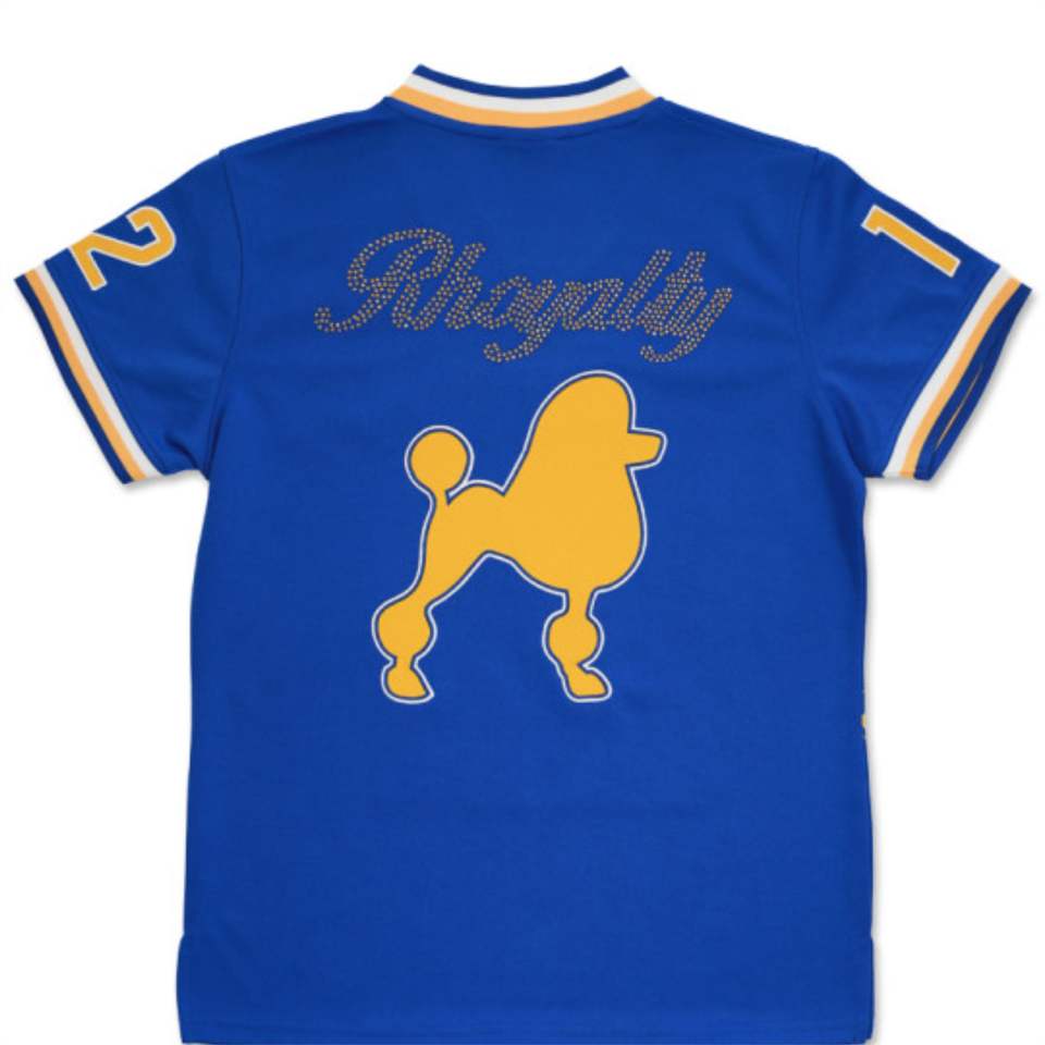 Sigma Gamma Rho Maillot de football bleu royal pour femme avec logos brodés Conception d'épaule avant cloutée Haut en polyester léger