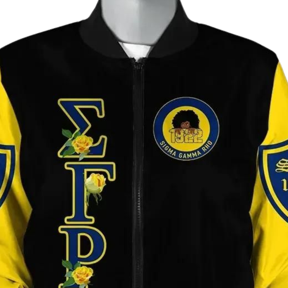 Veste en satin Sigma Gamma Rho SGRho grecque 1922 bleu royal or style bomber varsity mode féminine