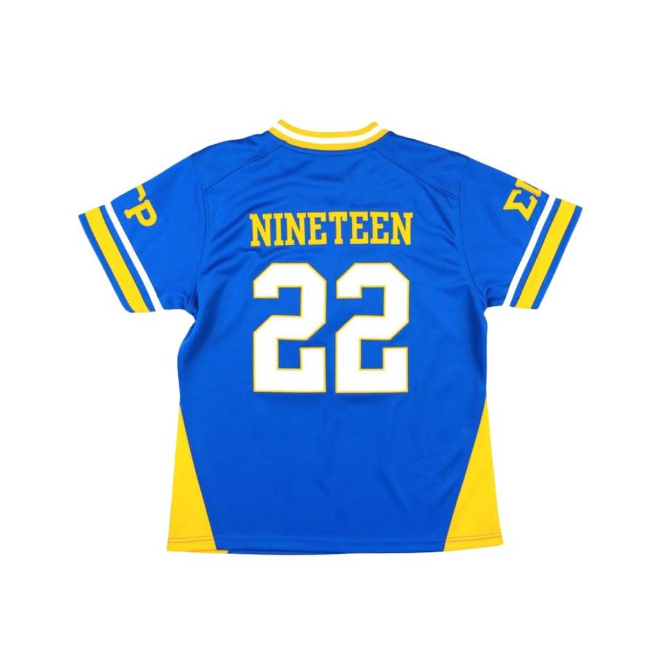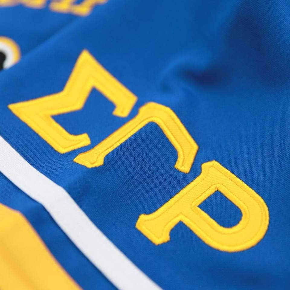 Sigma Gamma Rho SGRho Greek Sorority Maillot de football bleu royal 100% maille polyester avec logos brodés épaules avant et arrière