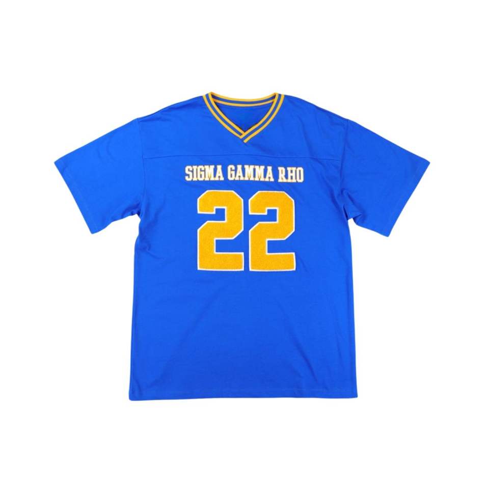Sigma Gamma Rho SGRho Greek Sorority T-shirt surdimensionné bleu royal 100% polyester avec logos d'équipe brodés