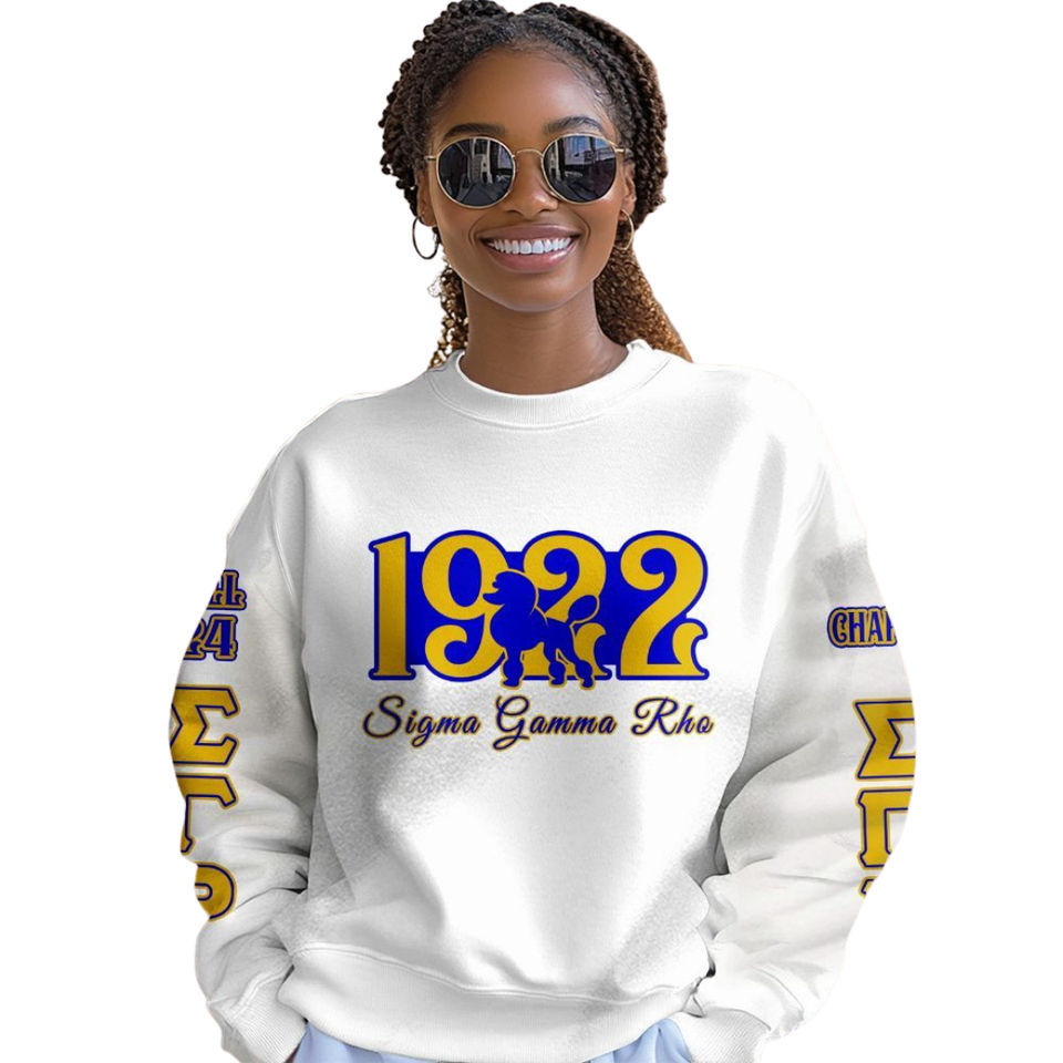Sweat-shirt à col rond en polaire doux Sigma Gamma Rho 1922 Bleu Or Vêtements grecs de sororité Pull pour femmes Tenue d'hiver
