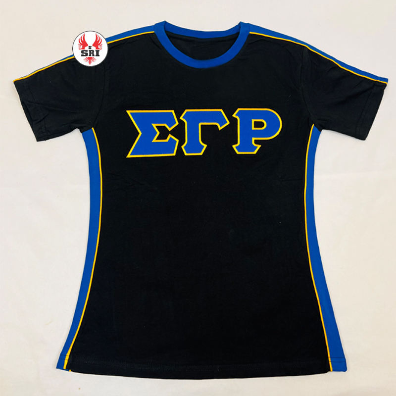 T-shirt en coton pour femmes avec broderie de la sororité Sigma Gamma Rho | Sororité SGRho, maillot en jersey de coton et polyester brodé sur mesure pour femmes