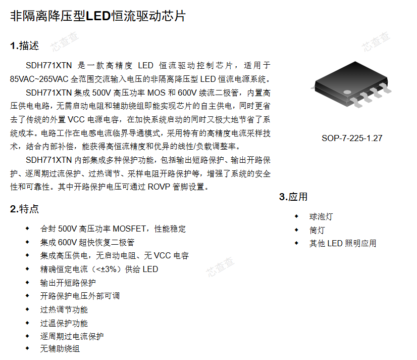 Paquet Silans SDH7711ATN SOP7 Puce de pilote à courant constant LED abaisseur non isolée