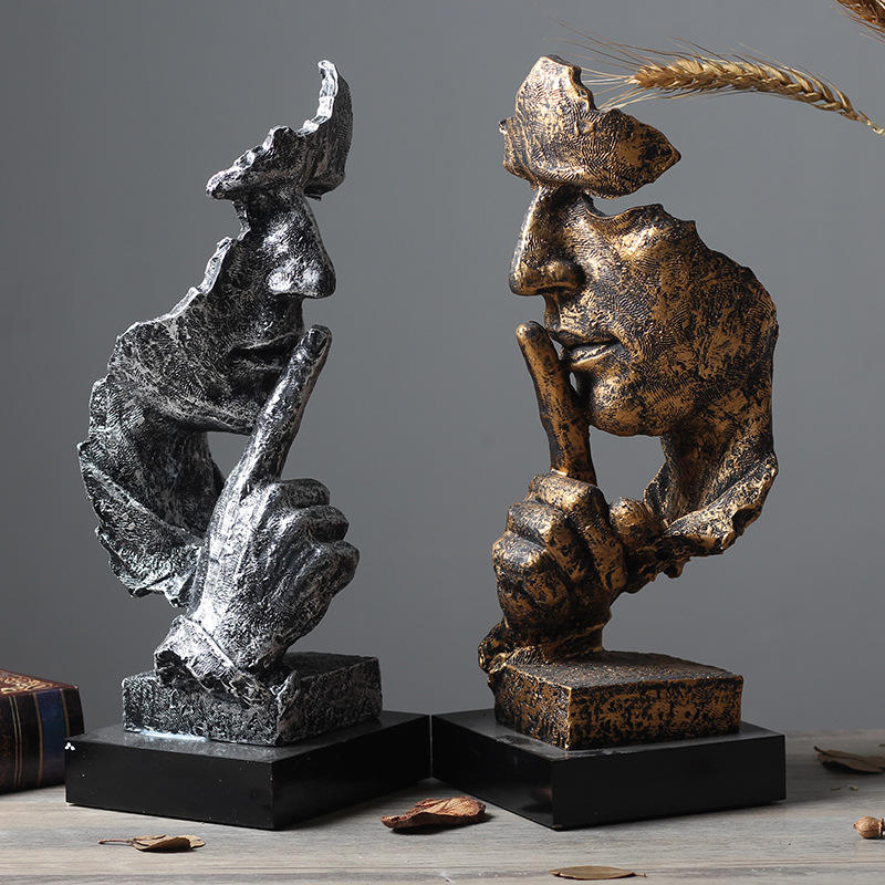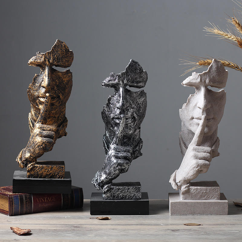 Le silence est d'or : Sculpture abstraite créative nordique, ornement vintage pour bureau, salon, décoration de maison.