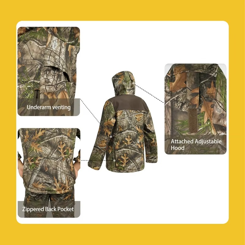 Vêtements de chasse silencieux pour hommes, veste de randonnée en softshell, camouflage, imperméable, polaire, à capuche