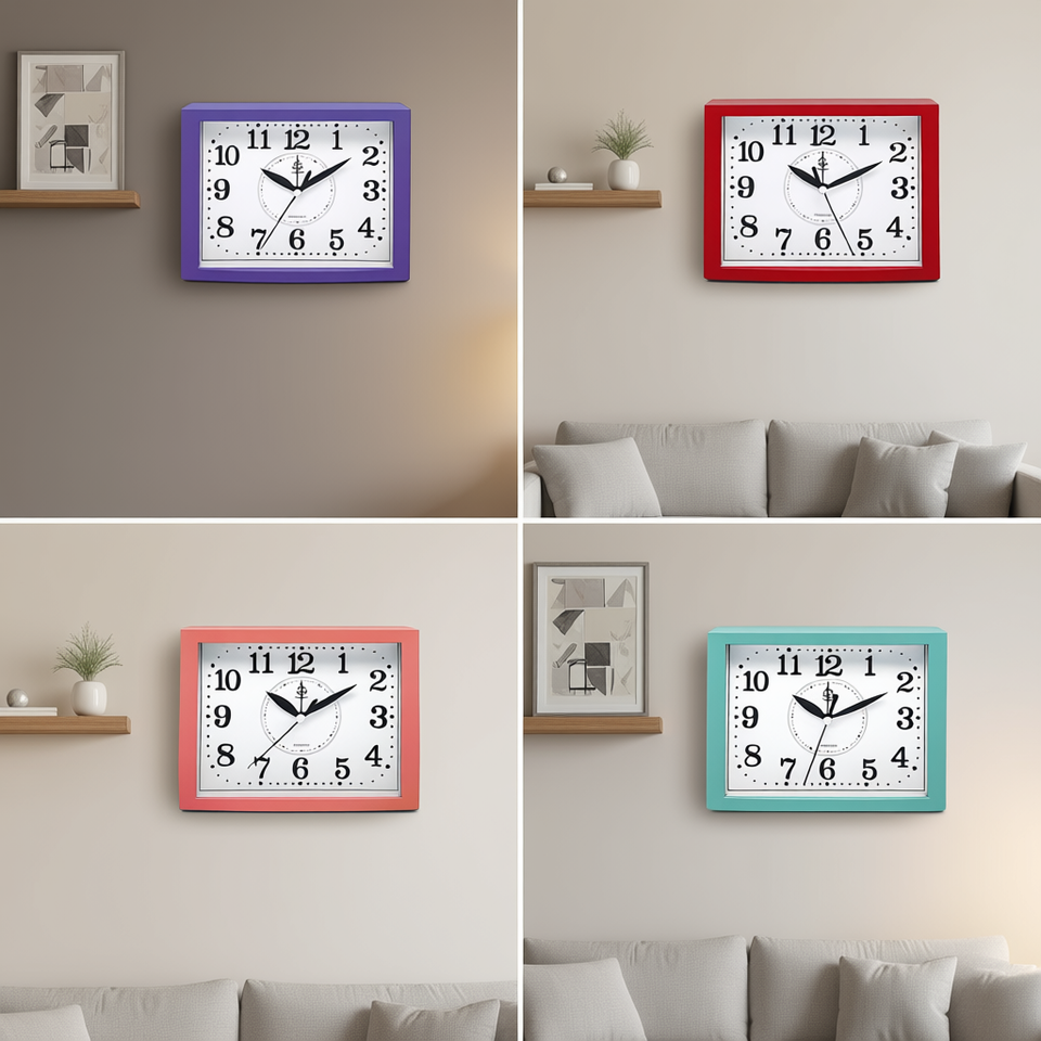 Horloge murale silencieuse Young Electronicos, analogique, quartz, carrée, en plastique, décorative, pour la maison, CL056