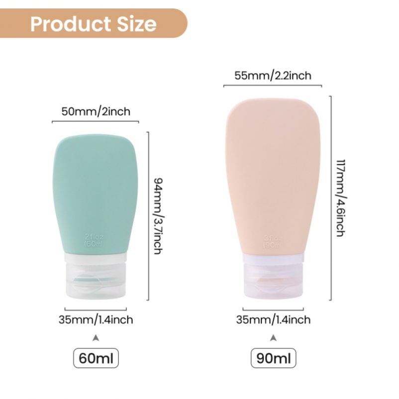 Bouteilles de voyage de conteneur cosmétique de shampooing rechargeable de silicium 90ml petite bouteille vide portative de compression de taille de voyage de 2oz en silicone