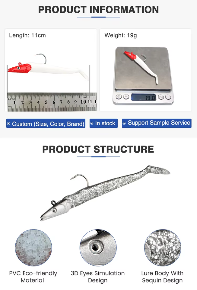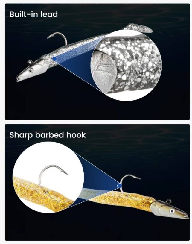 Leurre de pêche au silicone souple lumineux avec tête plombée pour la pêche au bar, à la perche et à la truite en mer – Matériau caoutchouc