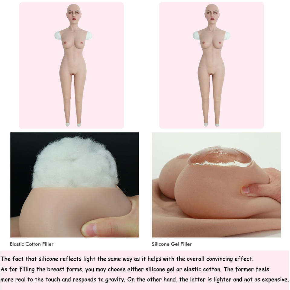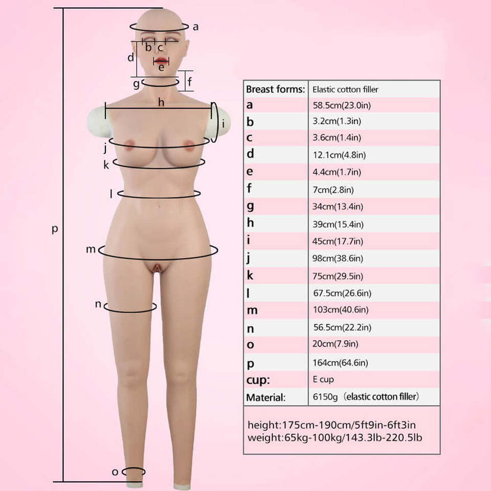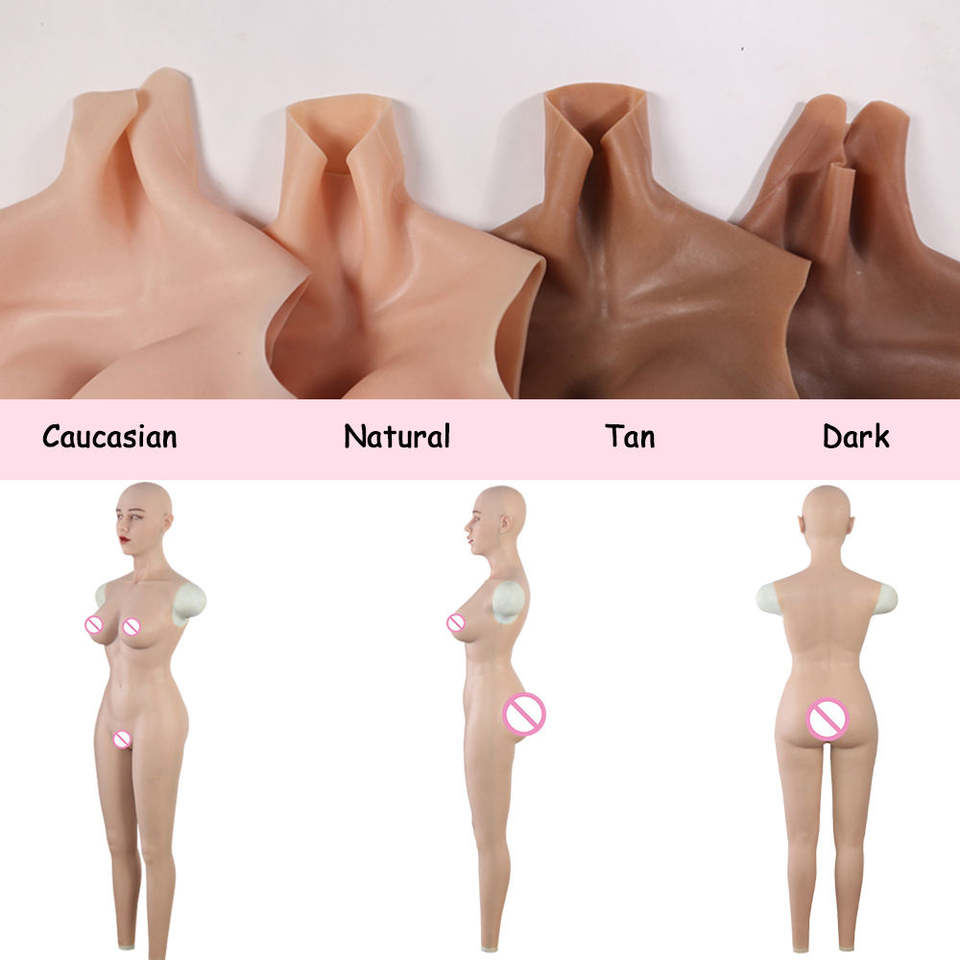 Combinaison en silicone avec faux seins réalistes, faux vagin féminin, masque de tête et maquillage délicat pour cosplay, travestissement, sissy.