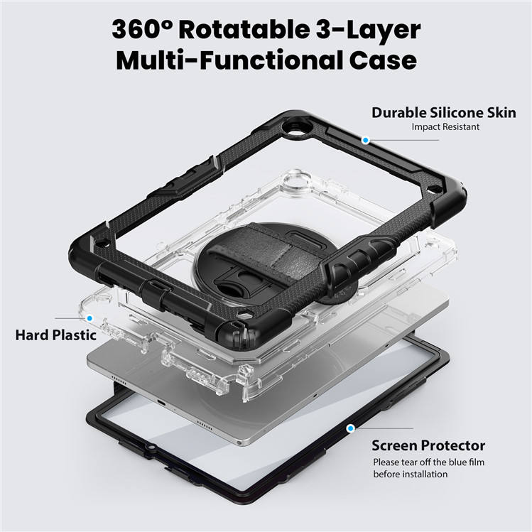Étui de tablette transparent en silicone robuste, résistant aux chocs, avec béquille, pour iPad 11e génération 10.2, Samsung Tab A9 A11 Plus