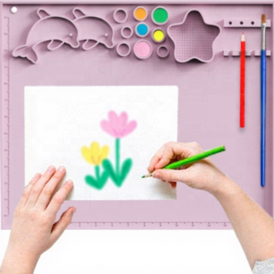 Planche à dessin en silicone grande taille pour enfants, tapis d'art lavable, station de peinture en silicone pour table et sol, pour le dessin et les loisirs créatifs