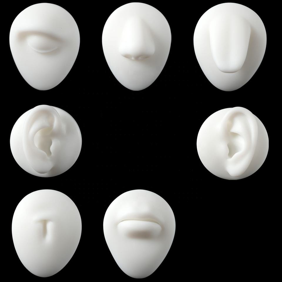 Forme:Nez, yeux, oreilles, nombril, langue, bouche