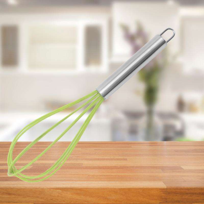 Batteur à œufs en silicone de 10 pouces avec manche en acier inoxydable, outil de mélange de cuisine
