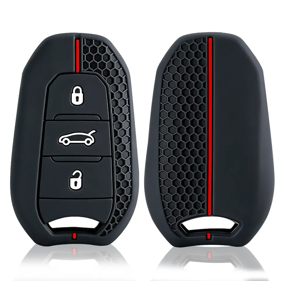 Housse de clé en silicone, porte-clés pour voiture, compatible avec Peugeot 3008 307 308 207 208 407 508 206 2008 301 5008, compatible avec Citroën C2 C3 C4 C5