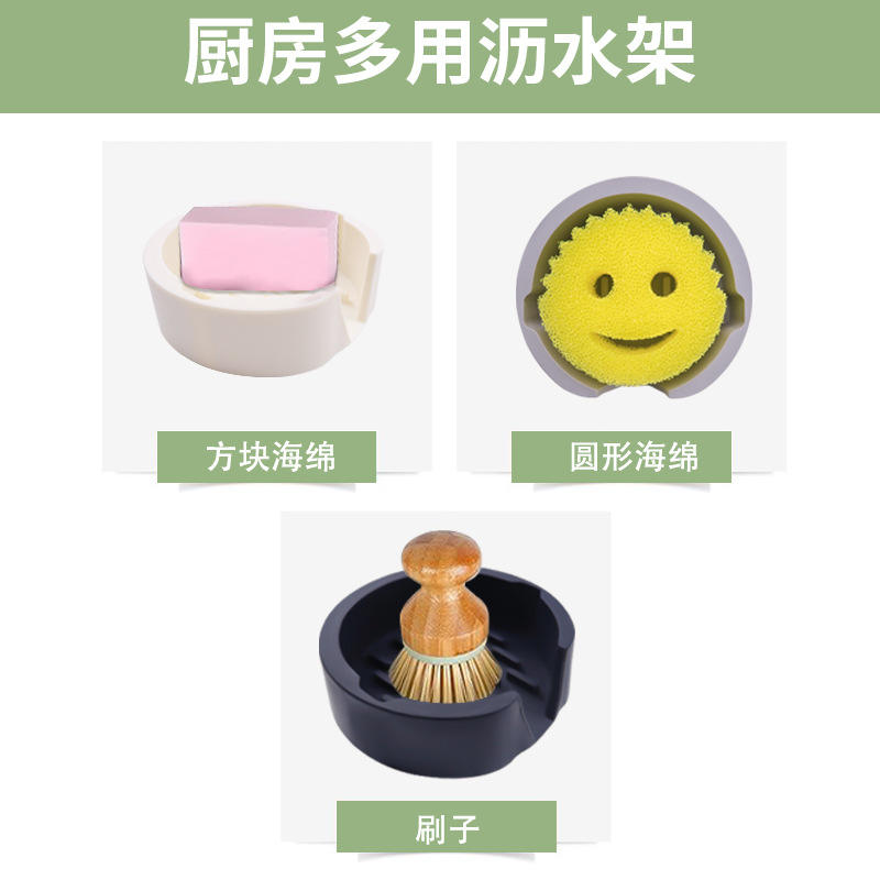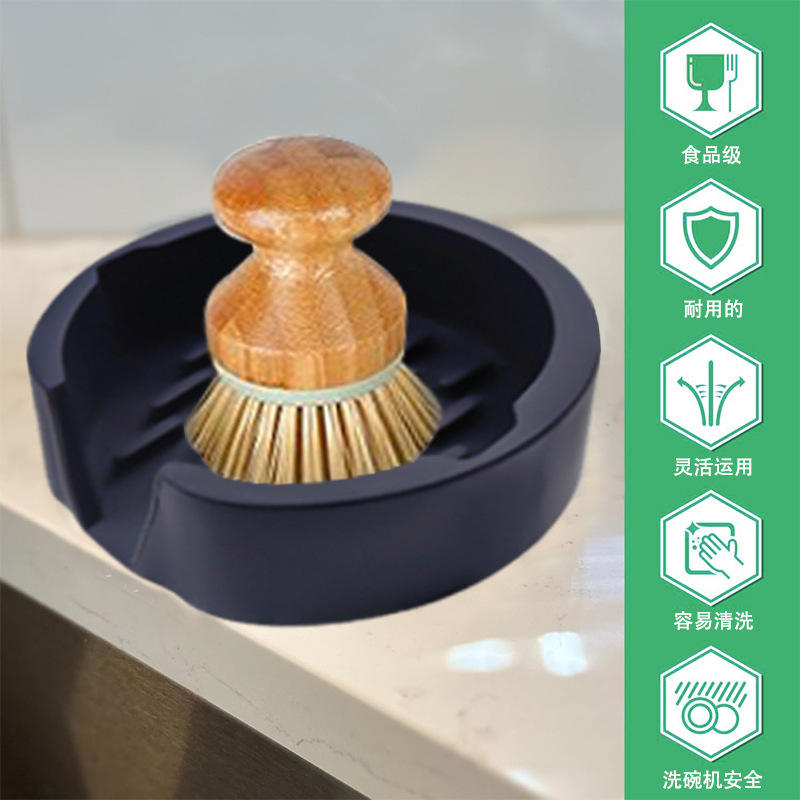 Support d'éponge de cuisine en silicone rond taille M avec ventouse, rangement égouttoir pour vaisselle, réutilisable
