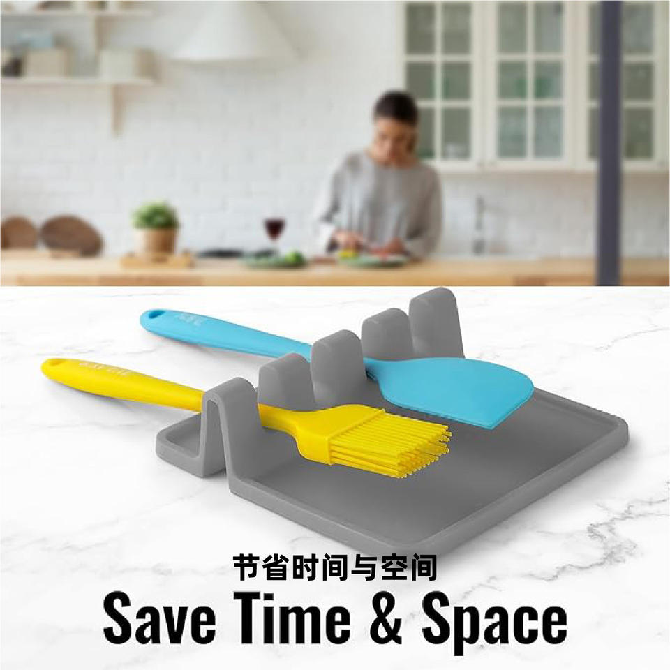Égouttoir à ustensiles de cuisine en silicone gris 5,5 pouces carré avec tapis anti-goutte pour rangement et organisation