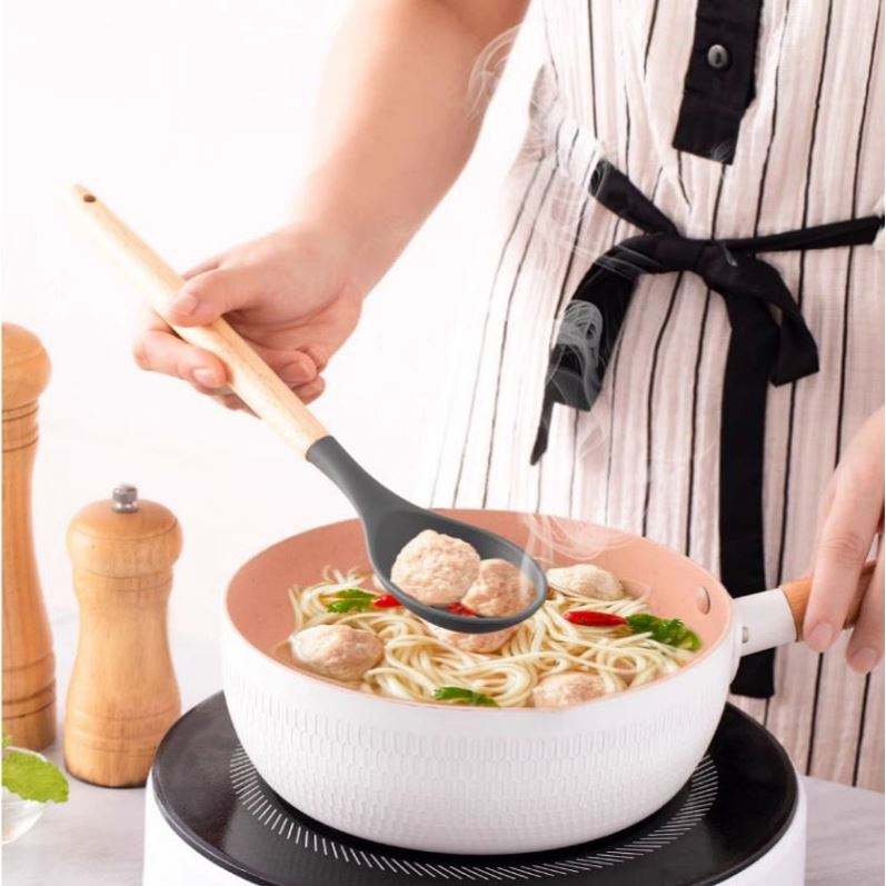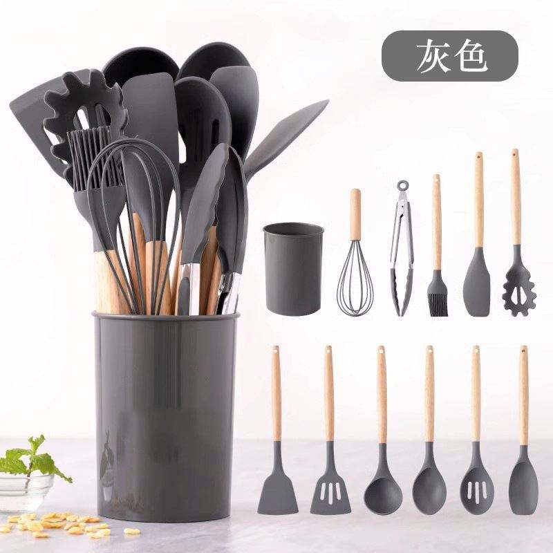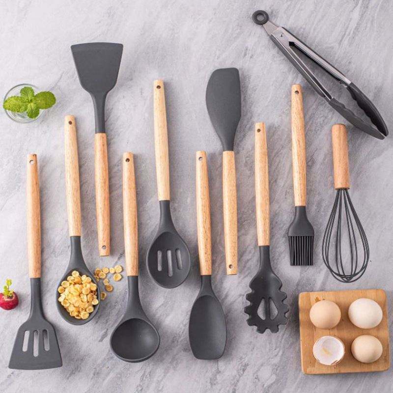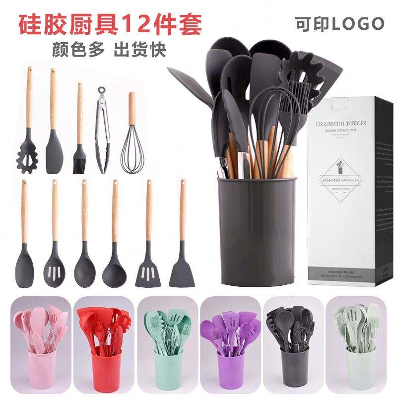 Ensemble d'ustensiles de cuisine en silicone 12 pièces avec seau de rangement, spatule en silicone, cuillère à soupe, outils de cuisine résistants aux hautes températures