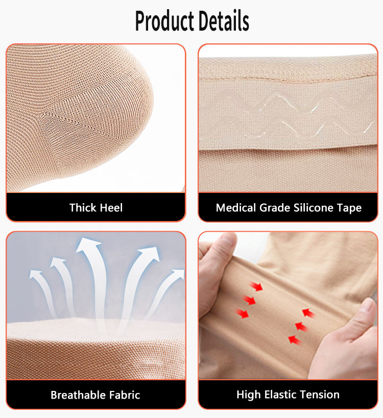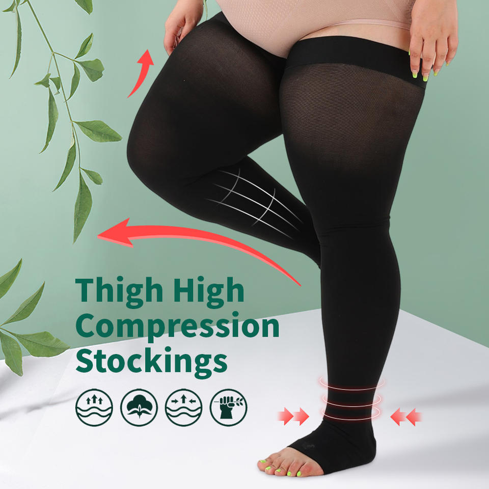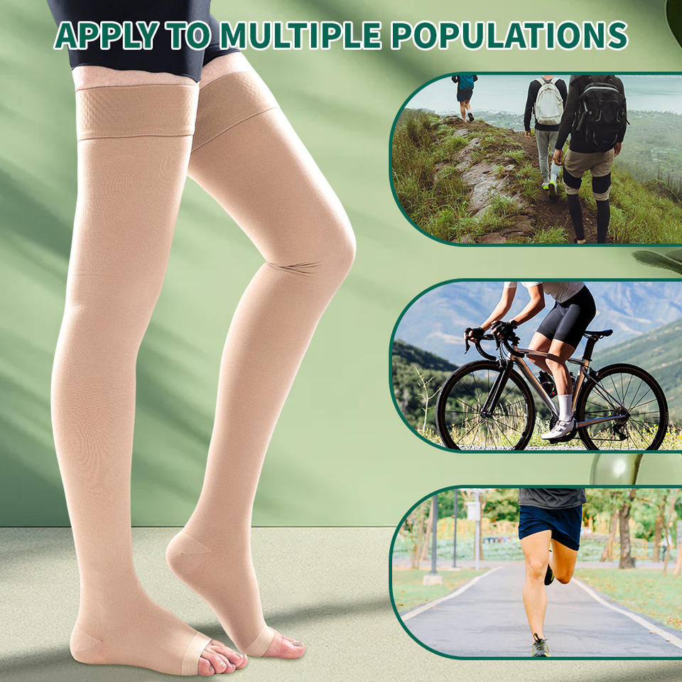 Bas de contention en silicone antidérapants de qualité médicale, hauteur cuisse, 20-30 mmHg, classe 2, bout ouvert