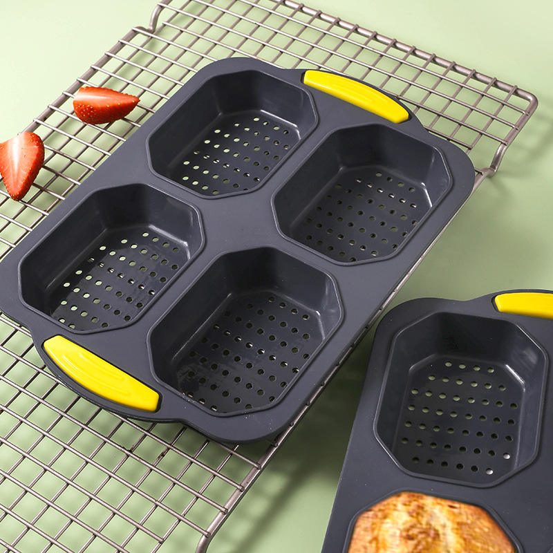 Moule à pain rectangulaire en silicone antiadhésif, 4 compartiments, pour baguette et ciabatta, qualité alimentaire, compatible lave-vaisselle et four, pour gâteaux