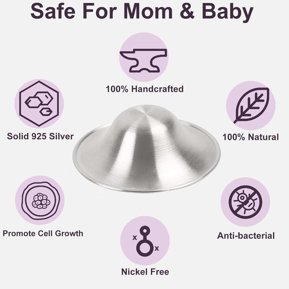 Anneaux en silicone pour protège-mamelons, perforés, respirants, trilaminés, argentés, réutilisables, pour l'allaitement, gobelets d'allaitement