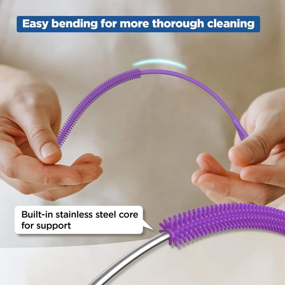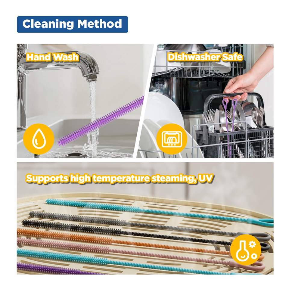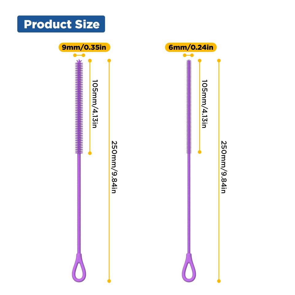 Brosse de nettoyage pour pailles en silicone, brosse à pailles réutilisable extra longue pour nettoyer les pailles et les gobelets en verre ou en métal, poignée antidérapante