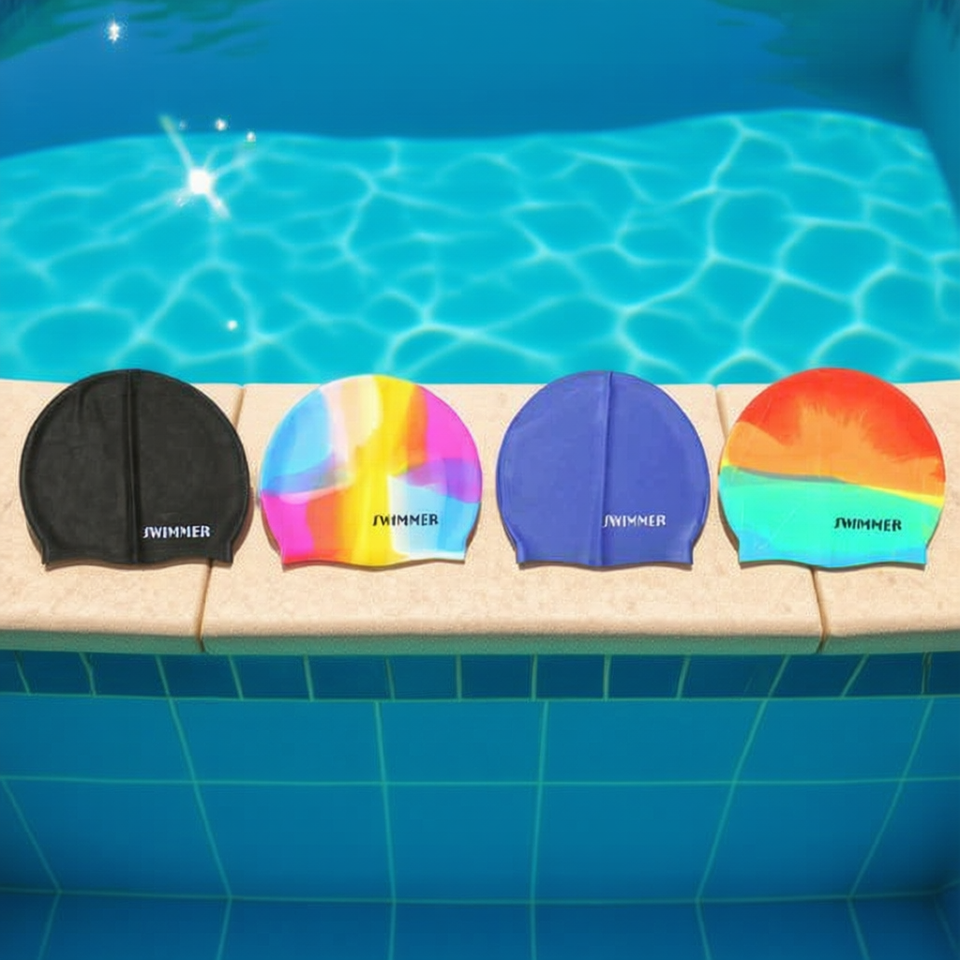 Bonnet de bain en silicone, style imprimé coloré, unisexe, pour la natation et la plongée, modèle YY-70465