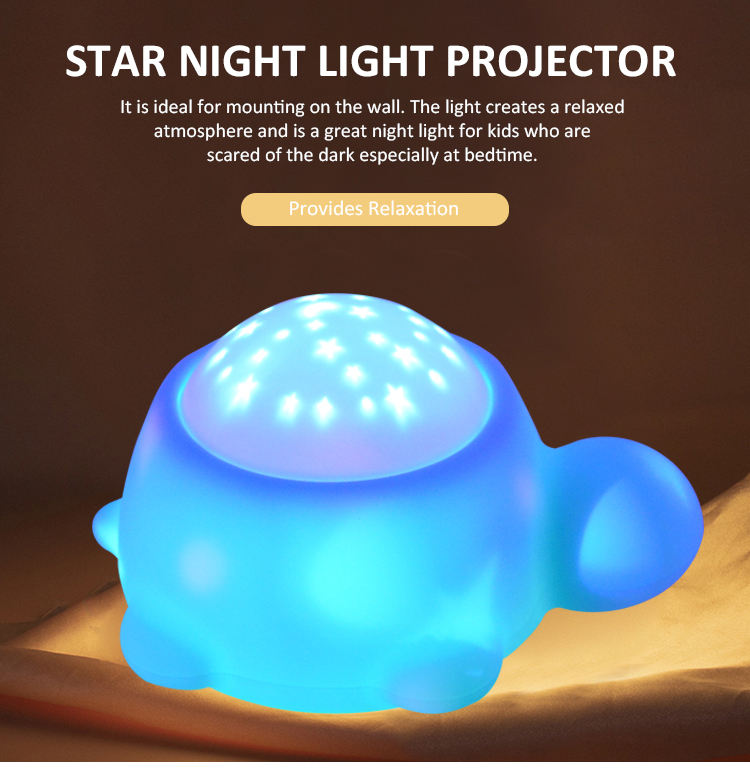 Mini projecteur LED sans fil en silicone avec veilleuses intégrées pour la musique tortue