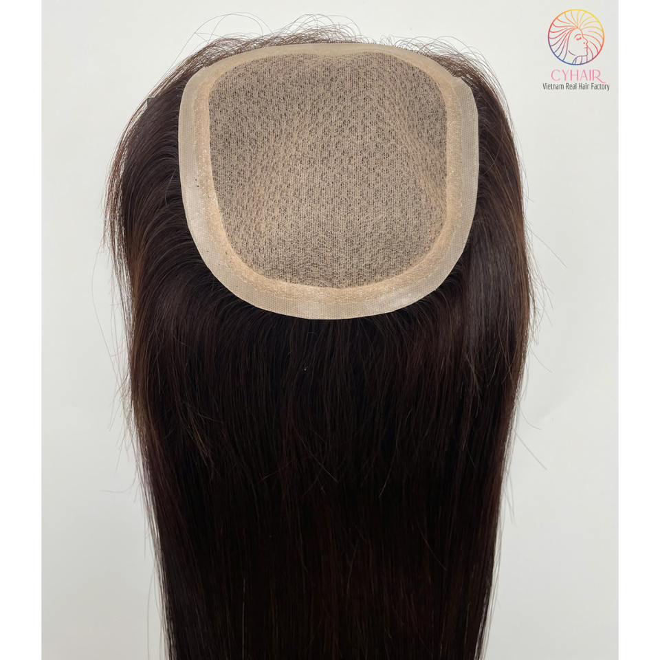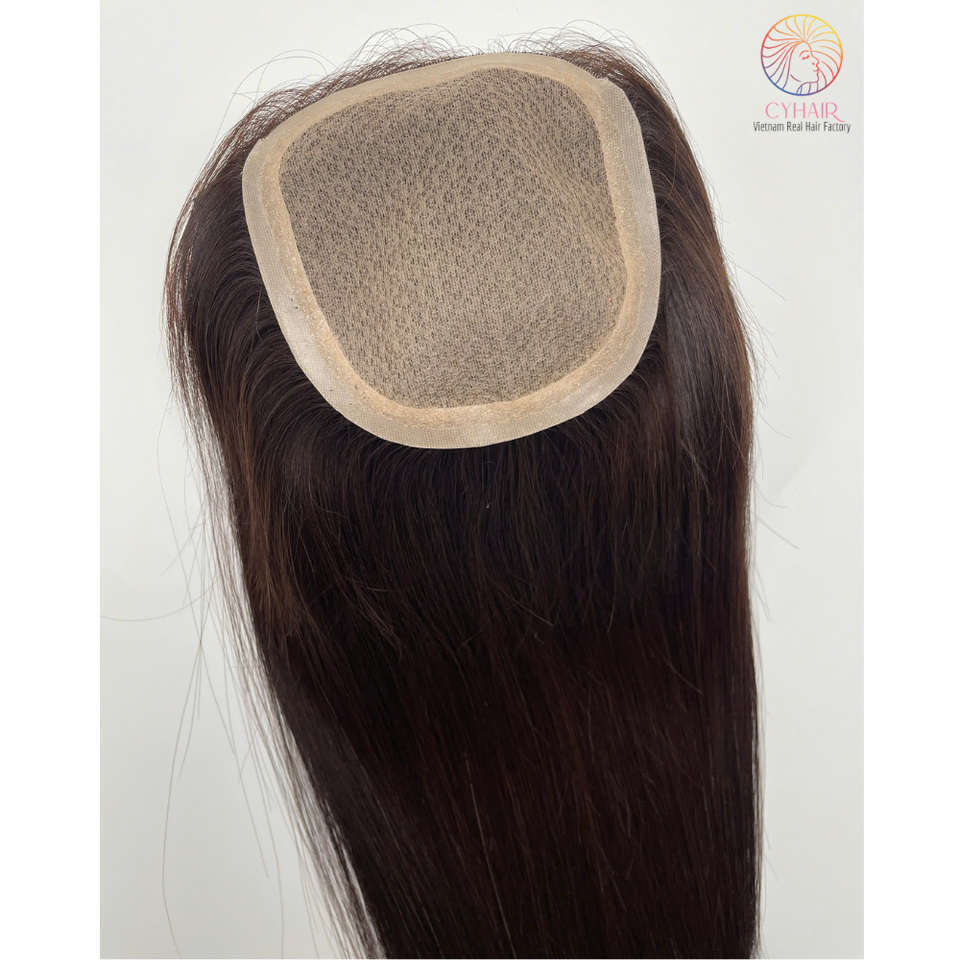 Base de Soie Cheveux Topper Cheveux Humains #2 Couleur 14 Pouces 35 Cm 100% Cheveux Bruts De Cyhair Usine Meilleure Qualité