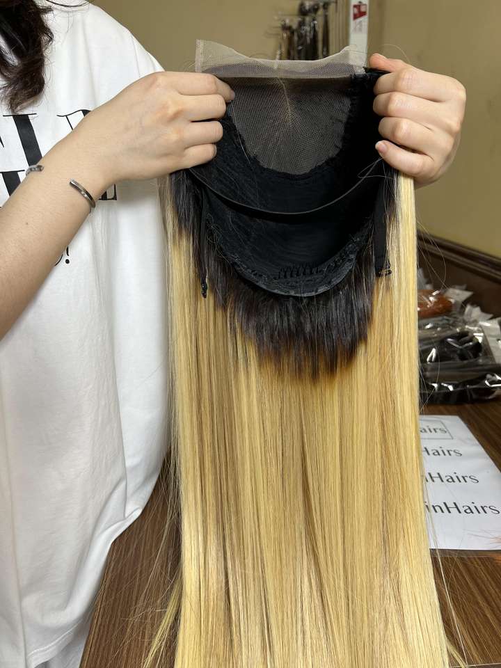 Perruque Lace Front Wig 2023 sans colle, 613 cheveux humains vierges, blond miel ombré, 5x5, 100