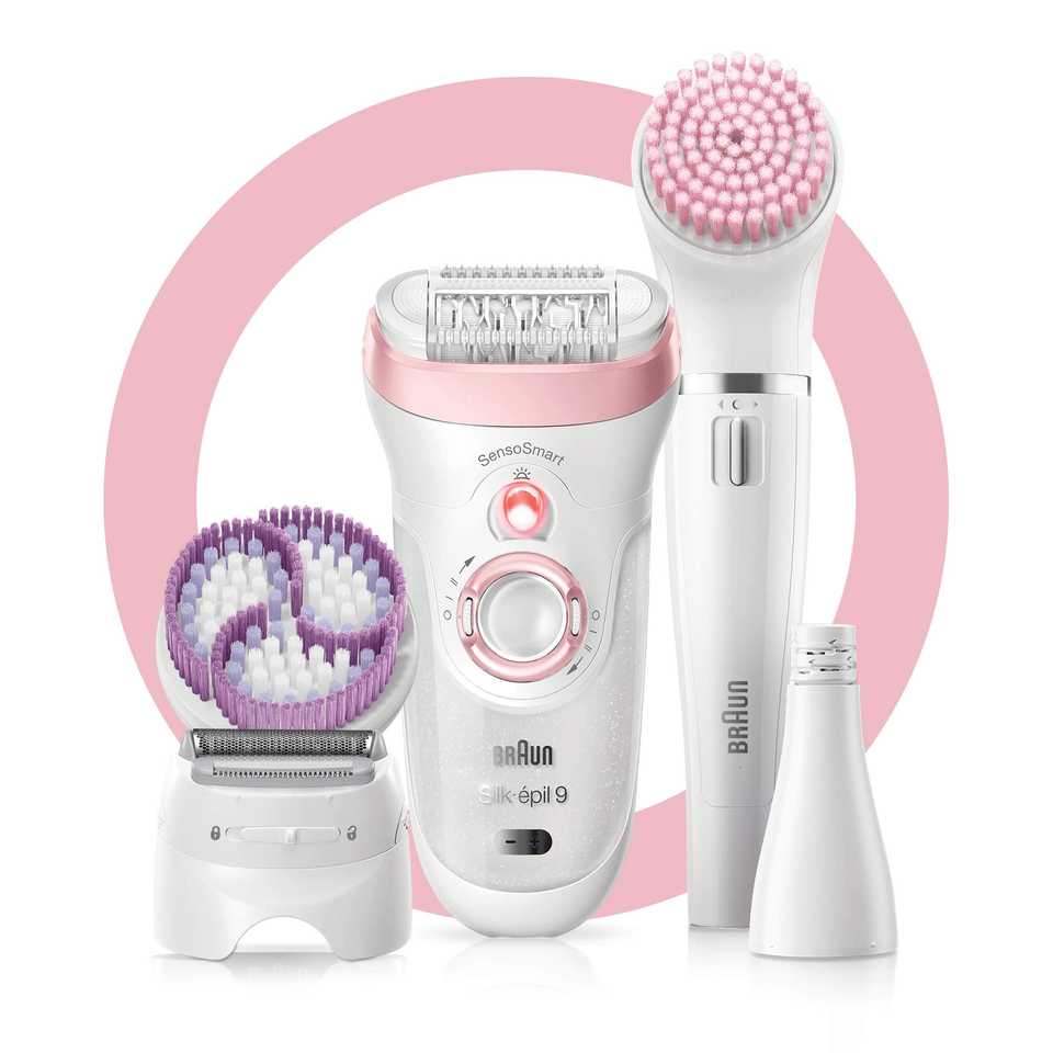 Silk-EPIL 9/975 Ensemble beauté SENSOSMART Tête pivotante Rechargeable Étanche IPX7 Utilisation sèche/humide Brosse nettoyante visage RAFRAÎCHISSANTE