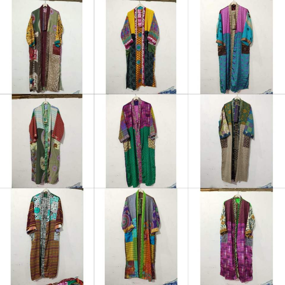 Robe kimono en soie patchwork légère, cardigan en soie coloré, imprimé floral bohème, peignoir pour femmes