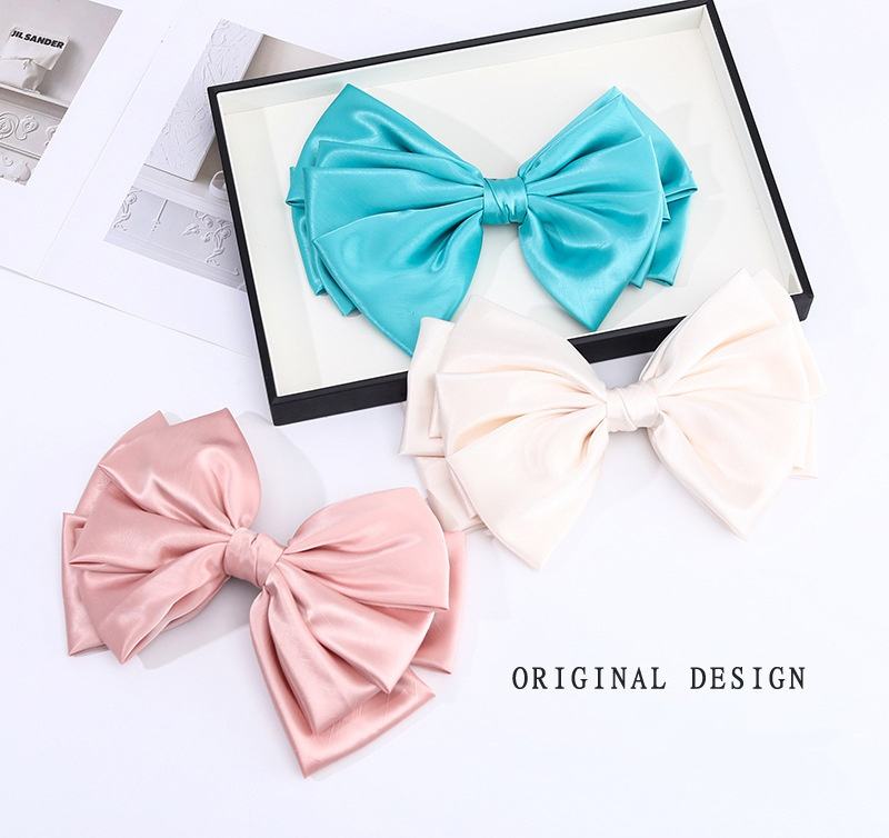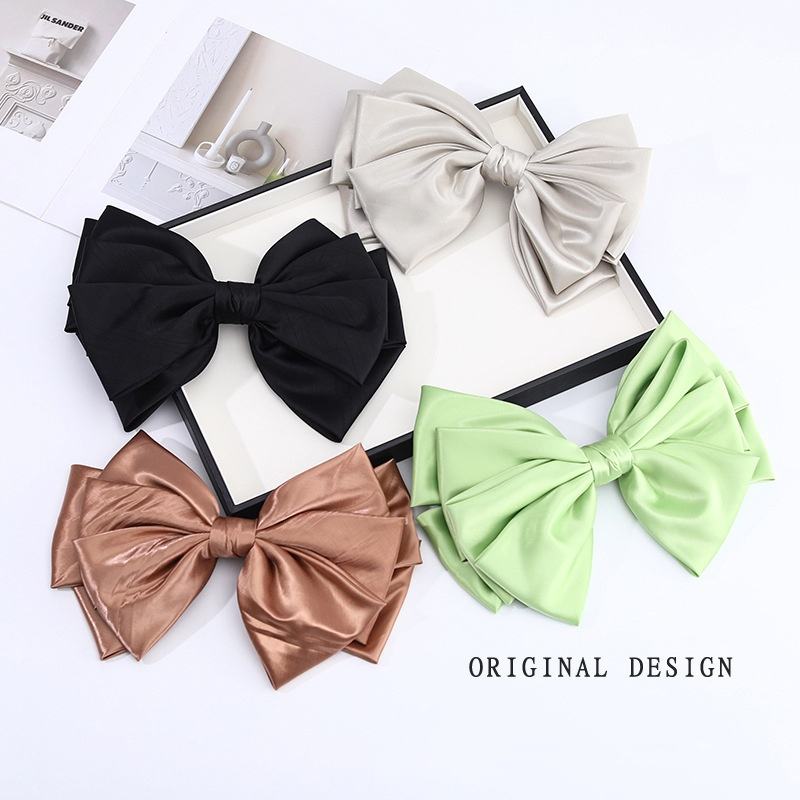 Satin de soie surdimensionné arc pince à ressort multicouche tridimensionnel élégant tempérament Sexy rayé cheveux arc Barrette