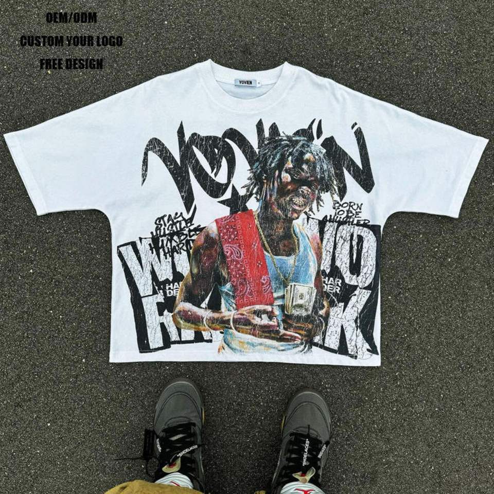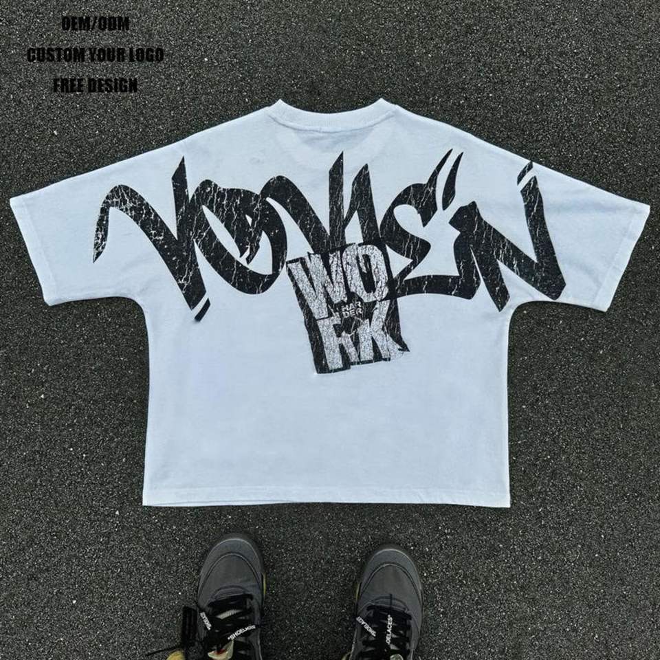 T-shirt streetwear personnalisé à ourlet court et épaules tombantes surdimensionnées | Jersey en coton 240 GSM | Approvisionnement direct d'usine OEM
