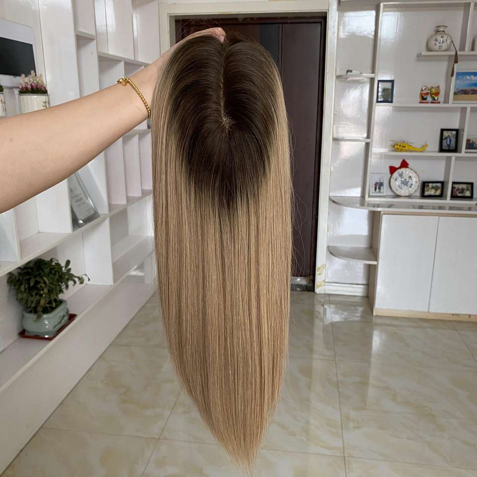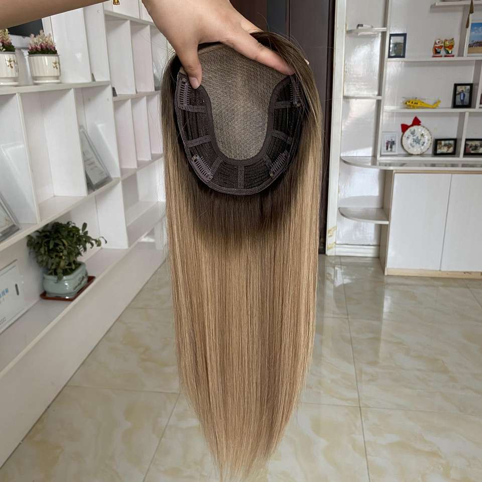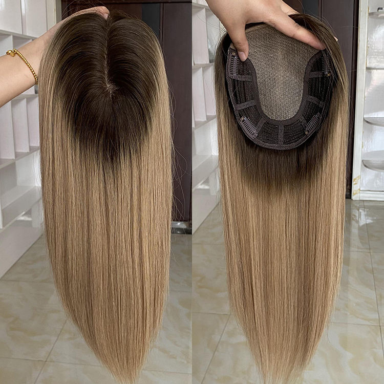 Topper en cheveux humains à base de soie pour femmes avec 4 clips, ondulation d'eau, base en soie