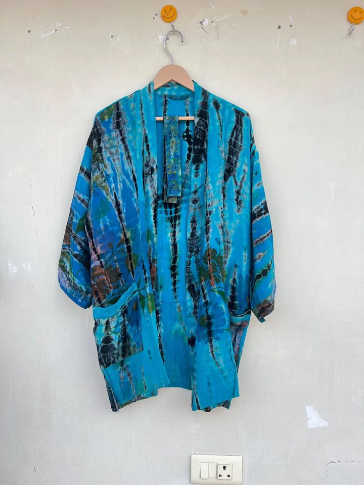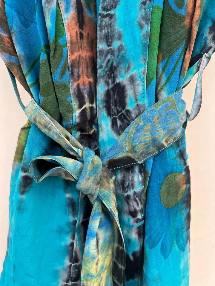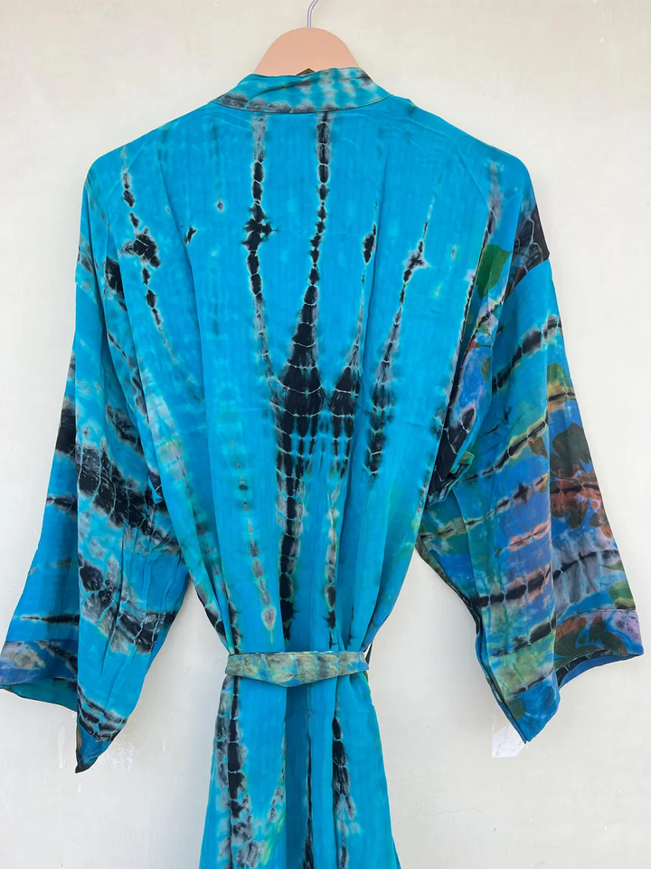 Silk Tie Dye Kimono Vintage Handmade Elegant Tie Dye Kimono Dress Boho Kimono Wrap Robe Festival Dress