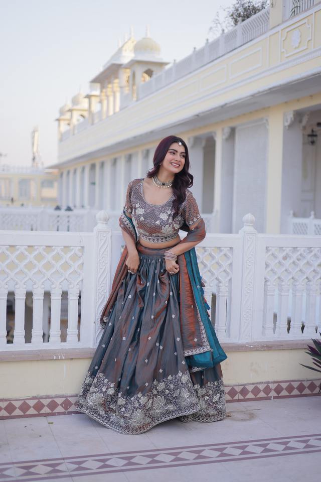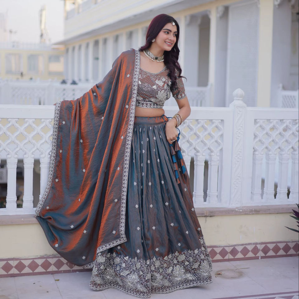 Collection de Lehenga Choli de mariage en soie avec broderie de paillettes et de fils